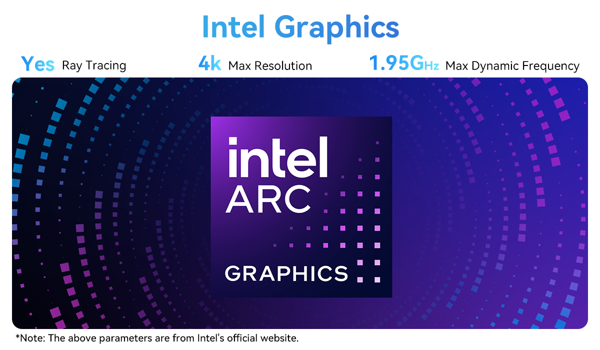 The integrated Intel Graphics, powered by 4 Xe - cores at a 1.95 GHz max dynamic frequency, its Ray Tracing delivering realistic lighting and shadows.